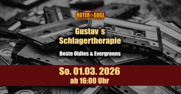 Gustav´s Schlagertherapie Details Date: März 1 Time: 04:00 p.m. Website: Event Website Venue Leitersdorf 103, 8271 Waltersdorf, Austria Beste Oldies & Evergreens Ein Nachmittag voller Erinnerungen! Mit DJ Gustav Ersölba! Freier Eintritt!
